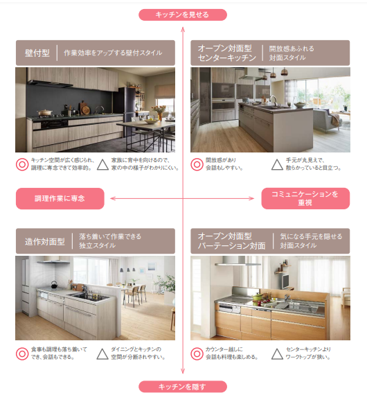 それぞれのライフスタイルの合わせて、希望のキッチンスタイルを選びましょう!