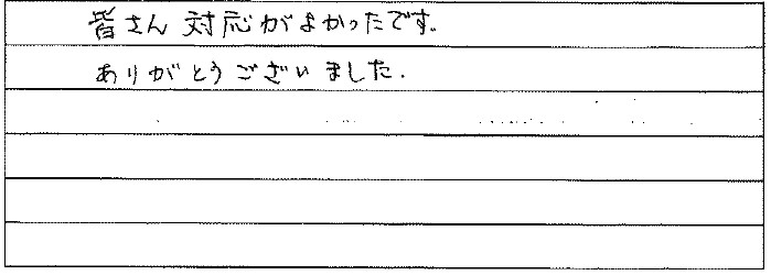 迅速かつ丁寧に作業していただき、大変有り難く思います。わからないことや工事以外の事もしっかりと対応していただきました。またリフォームをすることがあれば、またお願いしたいと思います。