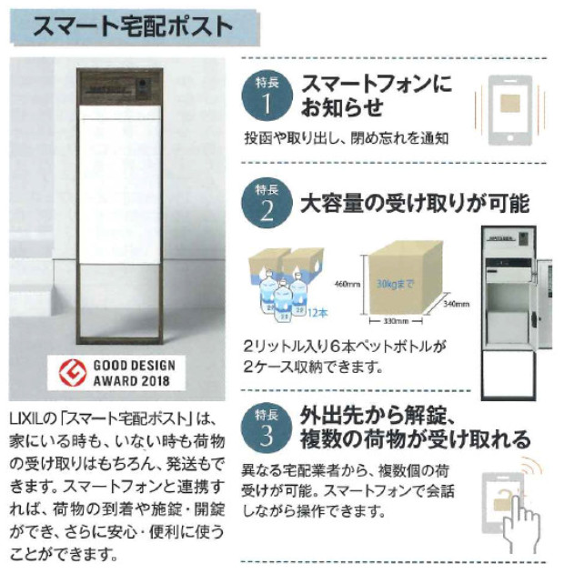 ここに荷物を入れてもらえば外出時も受け取りができ、とても便利だと思います!