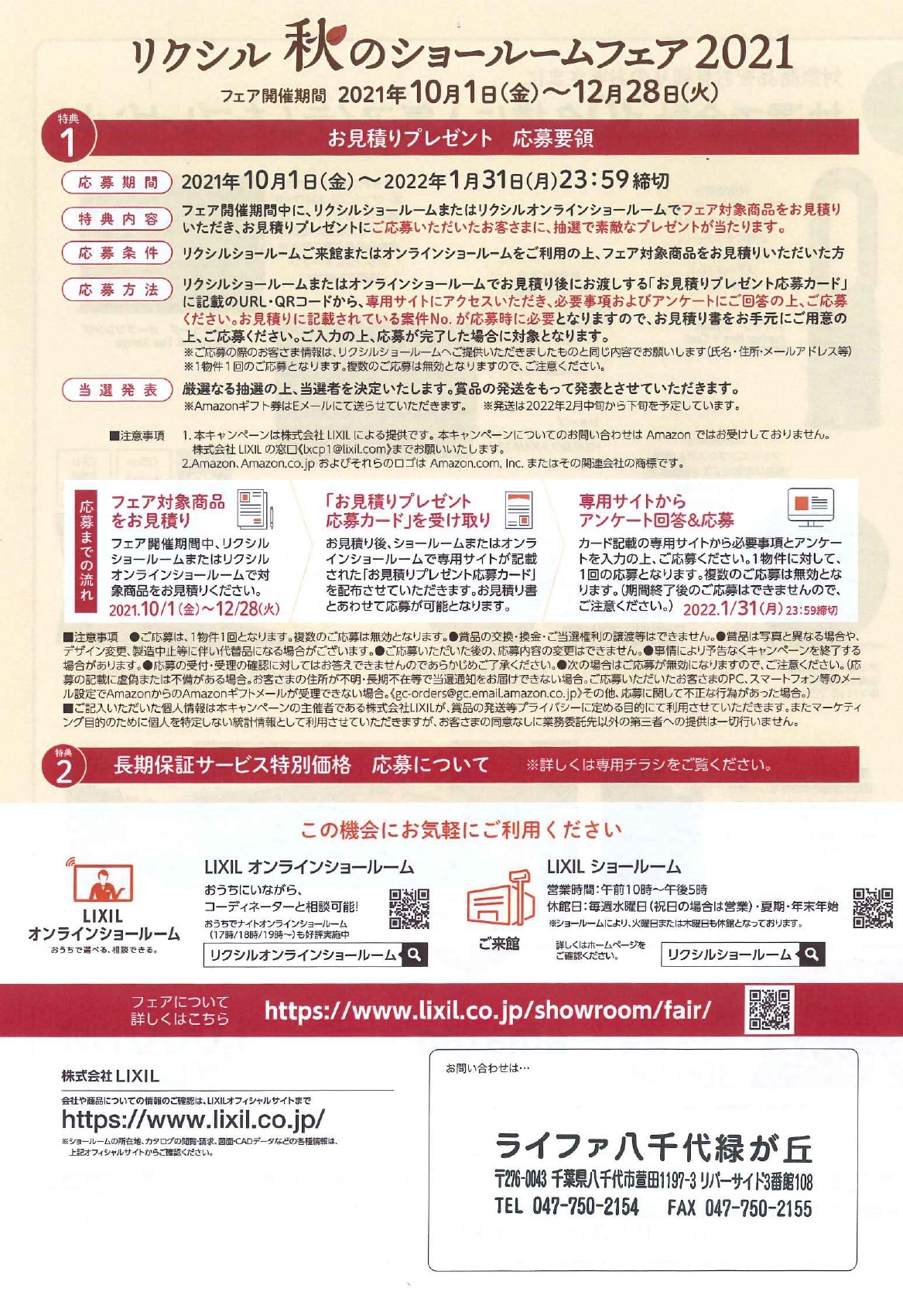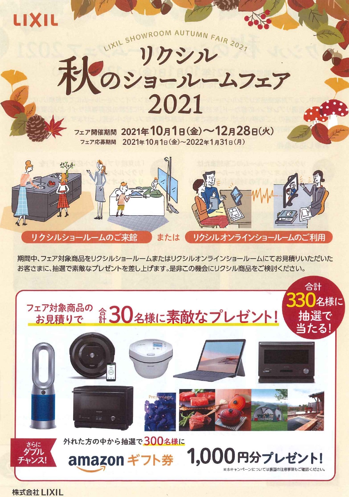 LIXILでは『リクシル秋のショールームフェア2021』を開催中です。