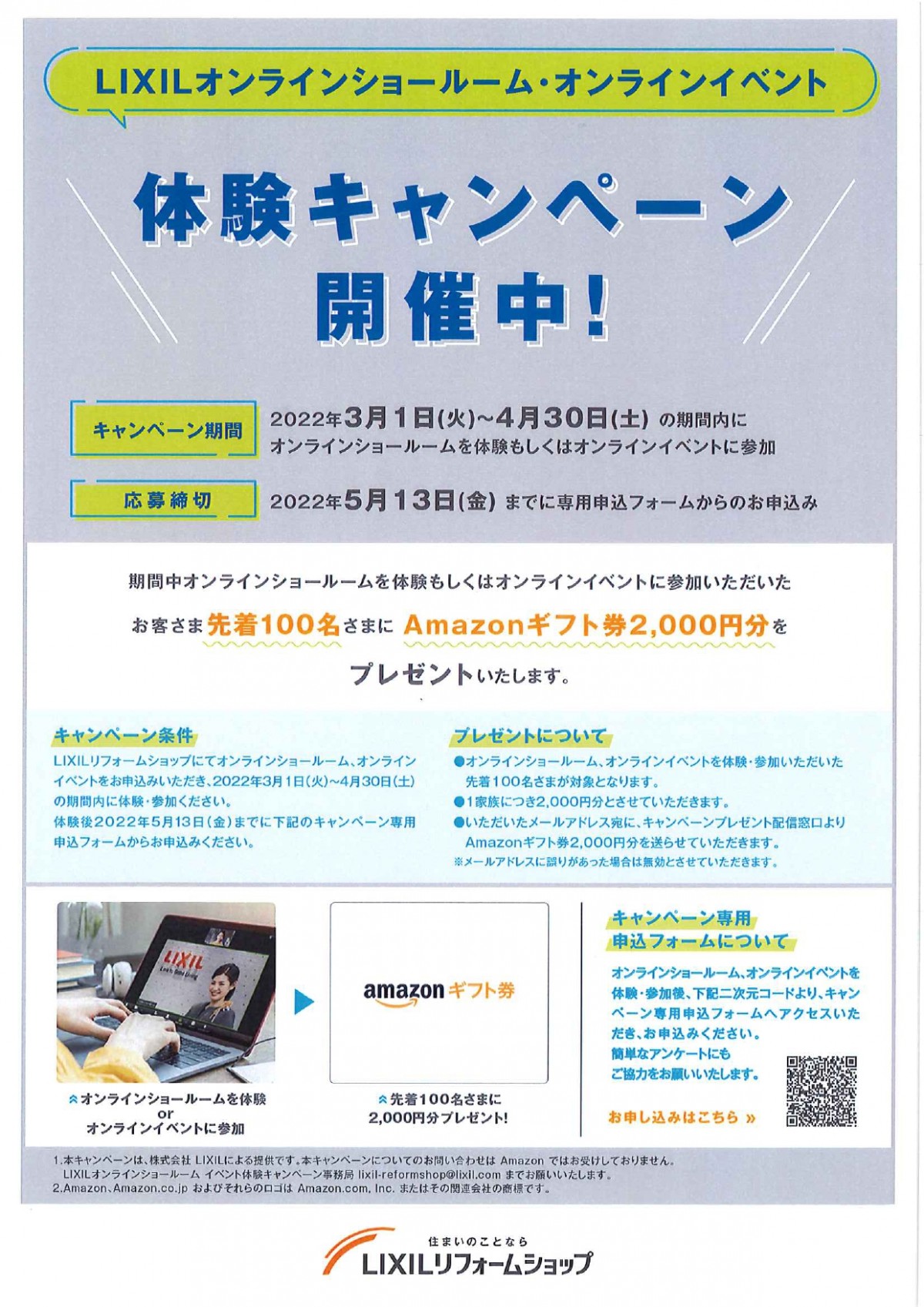 現在LIXILオンラインショールームでは、体験イベントを開催しています。