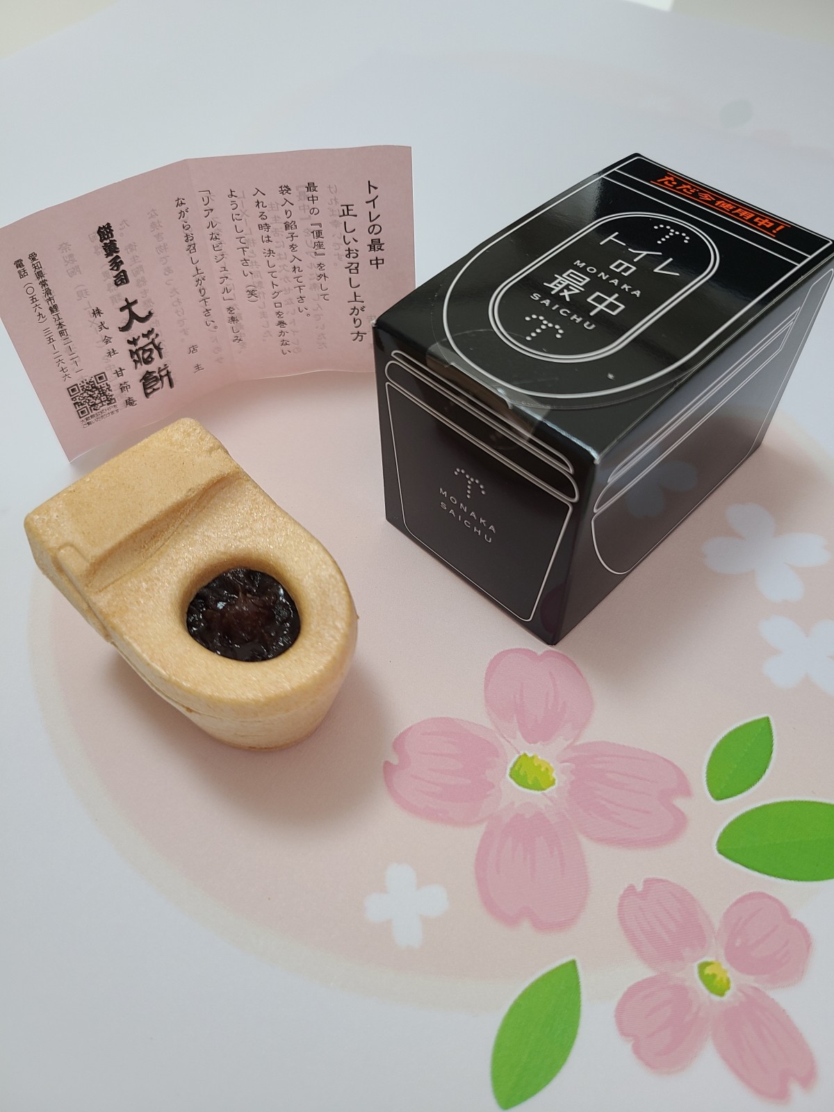 コラボレーションによるトイレの形をした「もなか」の和菓子です。