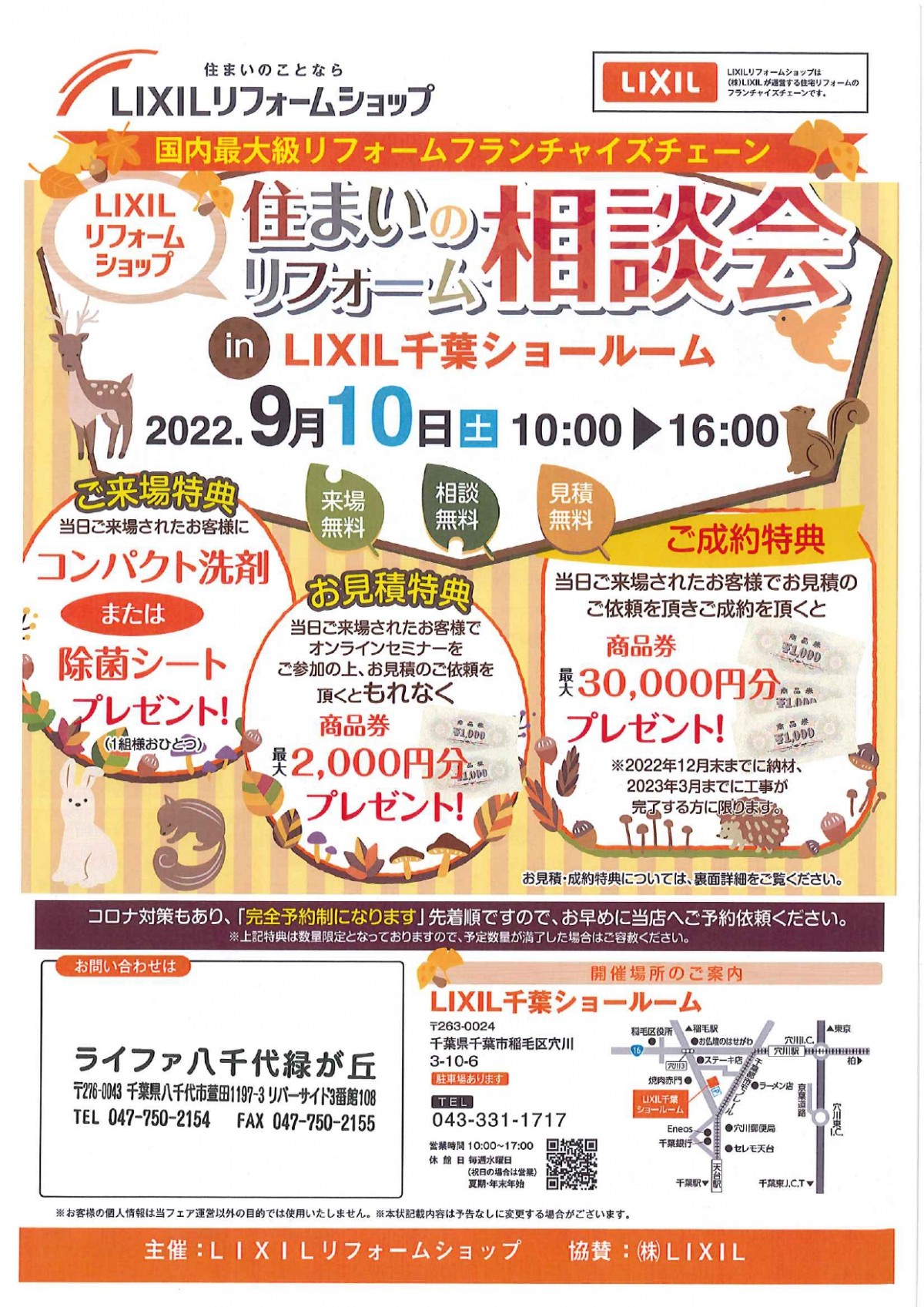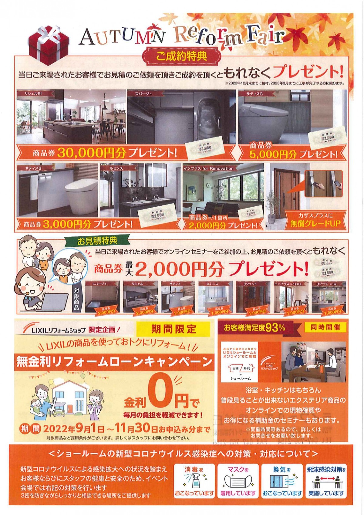リフォームをご検討中の方は、是非この機会をご利用ください。