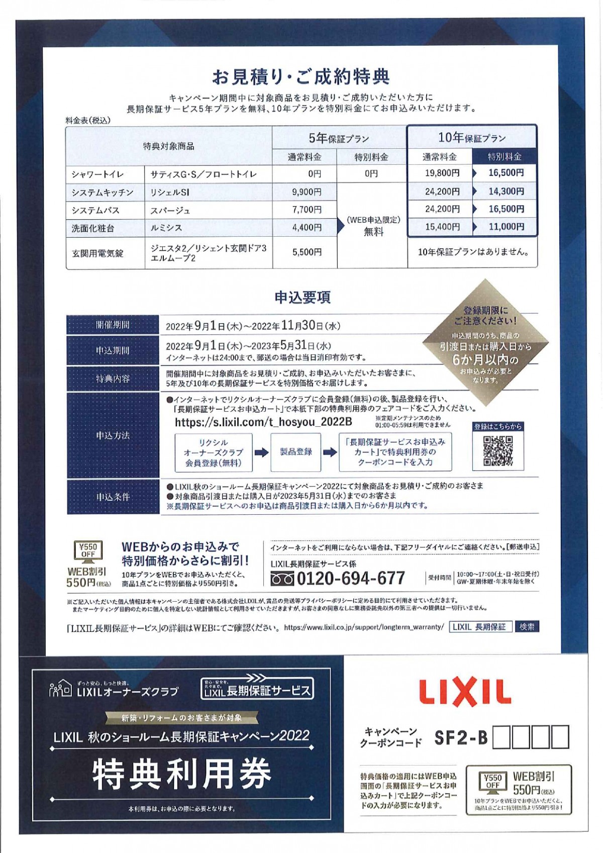 ②LIXIL 秋のショールーム 長期保証キャンペーン2022