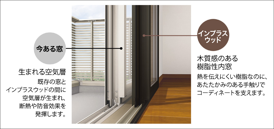 インプラスは今ある窓に内窓を設置することで、空気の層をうみだします。