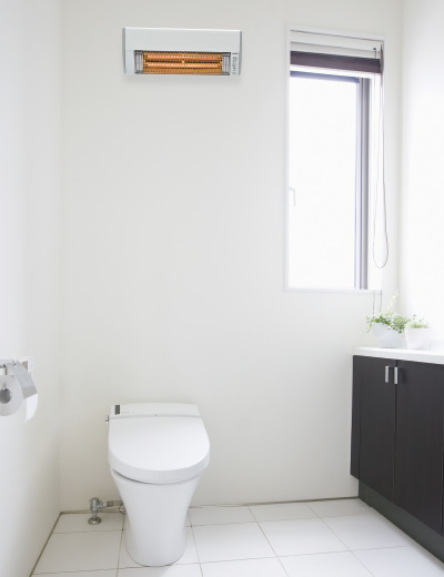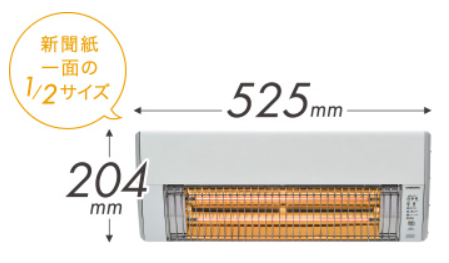 脱衣室や洗面室などの狭いスペースにも設置できるコンパクトサイズが特徴のひとつ。また、壁掛けなので床に置く暖房器具と違い床のスペースを取らないため『寒いけれど暖房を置くスペースがない!』なんて場所にも設置できちゃうのです。