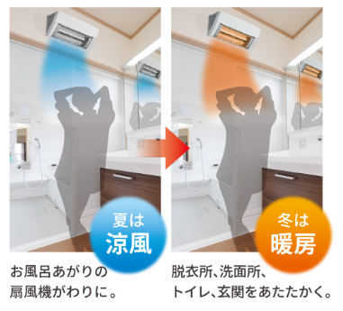 夏は涼風でお風呂上りもさわやかに。冬は暖房で暖かく。