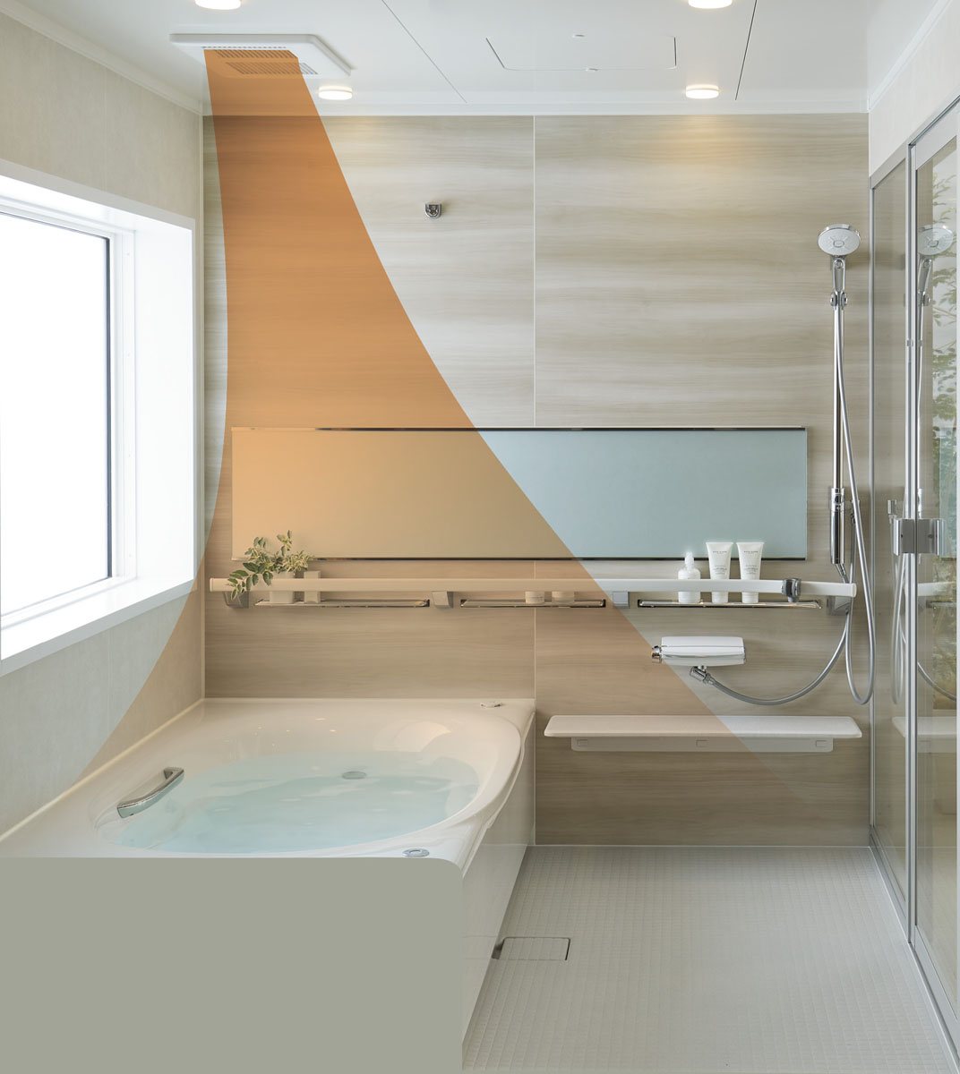 暖房機能を入浴前から使用すれば、浴室の予備暖房になり、寒さによる体への負担を軽減することができます。