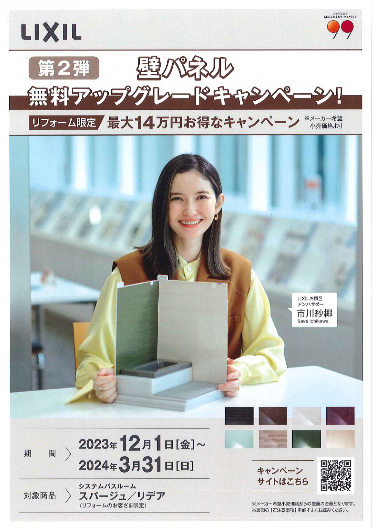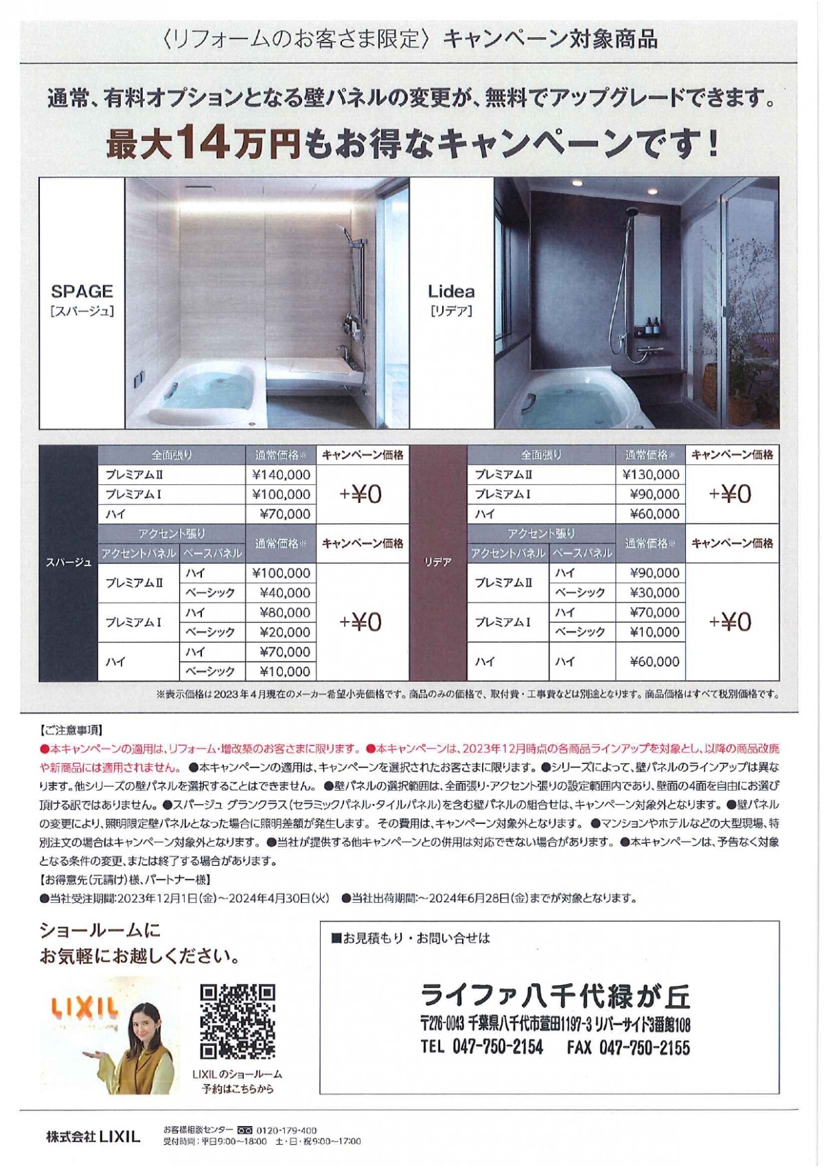 リフォーム限定 最大14万円お得なキャンペーン※メーカー小売り希望価格より