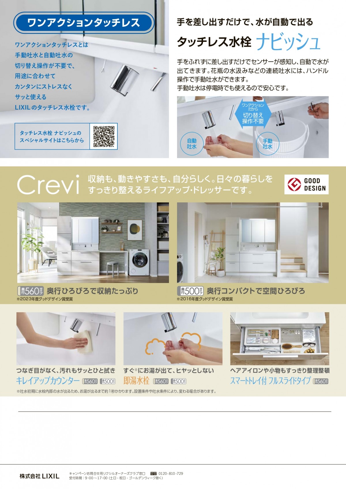 対象洗面化粧台:クレヴィ(奥行560タイプ・奥行500タイプ)