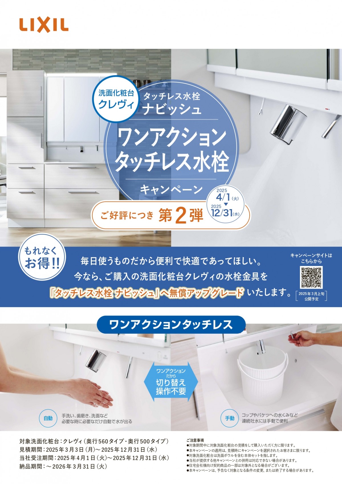 洗面化粧台クレヴィをご検討中の方は、無償でアップグレードできるこのチャンスをお見逃しなく!!