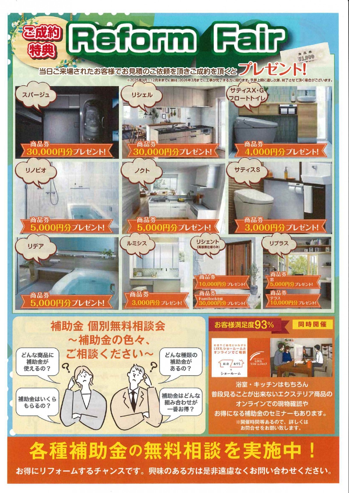 「住宅省エネ2025キャンペーン」の各種補助金事業のご相談もご一緒に伺っておりますので、リフォームをご検討中の方は是非このイベントをご活用ください♪