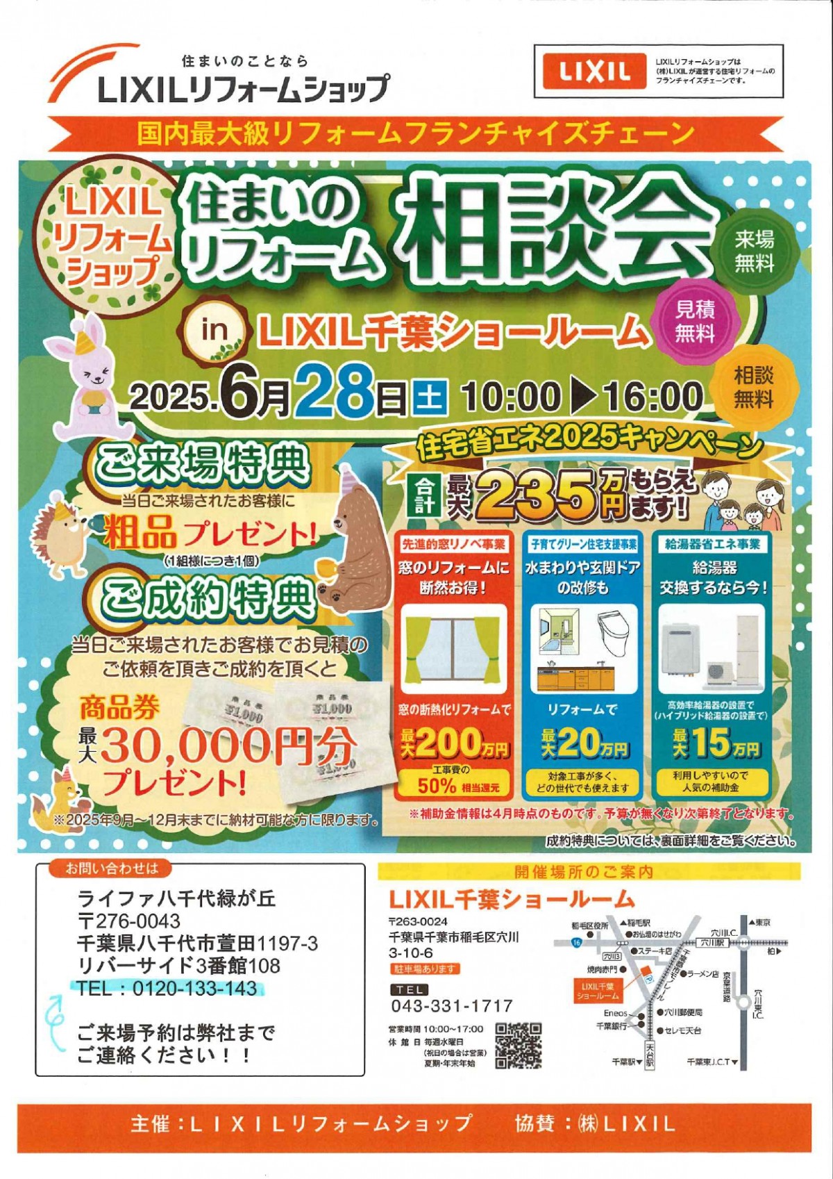 LIXILの千葉ショールームにて、リフォーム相談会を実施いたします!