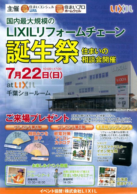 LIXILリフォームチェーンの誕生祭「住まいの相談会」を開催します。